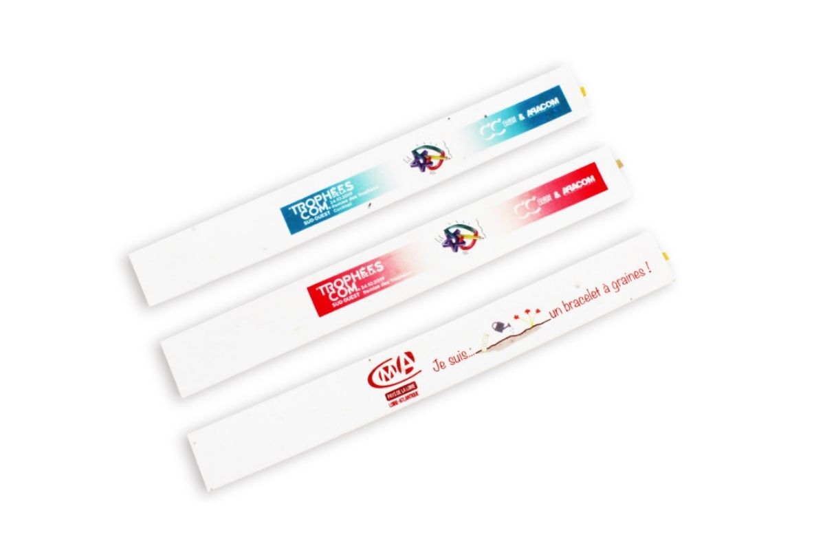 Dimensions : 2,5 x 20cm | Zone de marquage : 20,4 x 1,9 cm | Poids : 1gr | Composition : papier 200gr | Quantité minimale de commande : 100 exemplaires