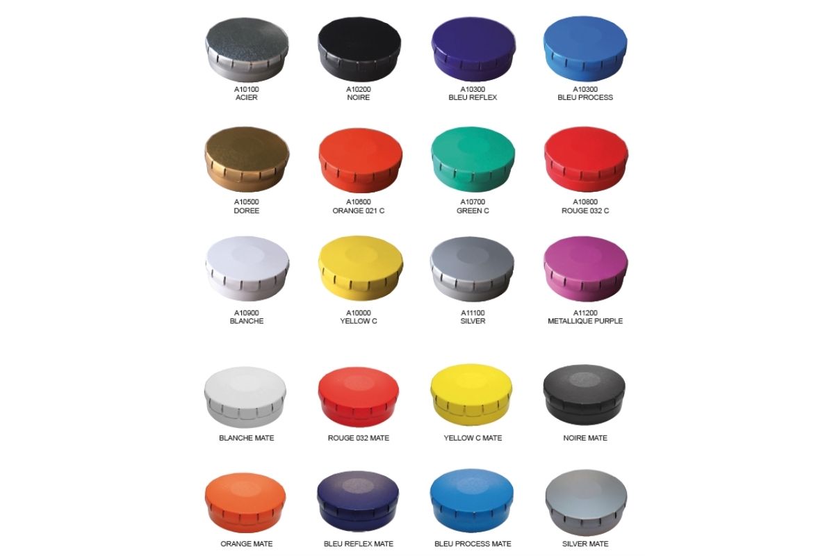 Dimensions : Ø 45mm | Composition : métal | Coloris : 20 choix possibles, sur simple demande | Quantité minimum de commande : 288 unités