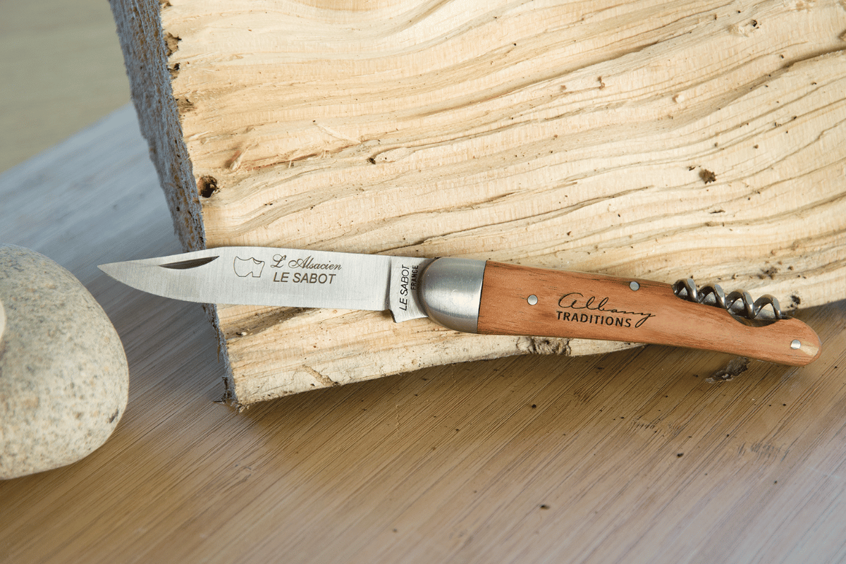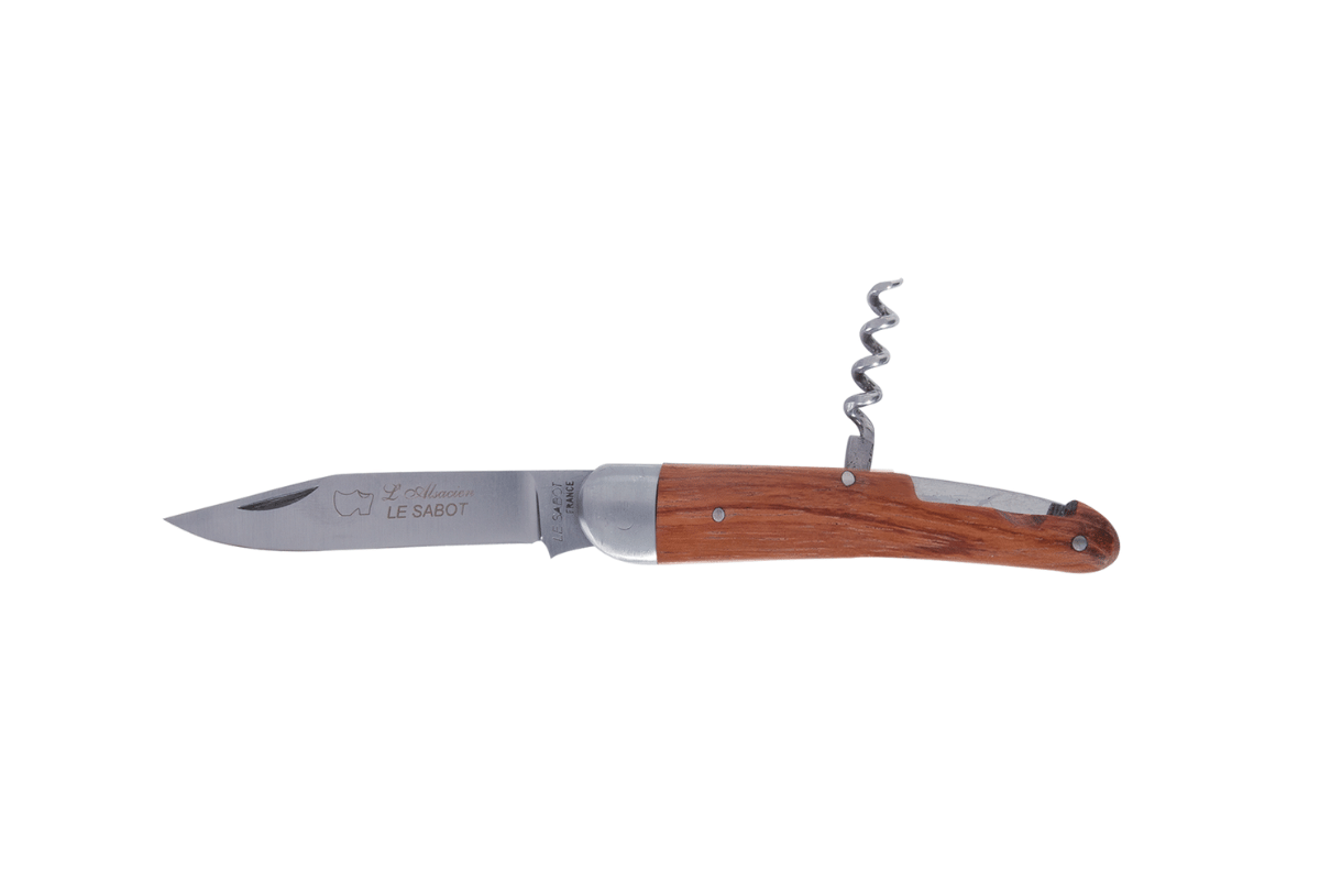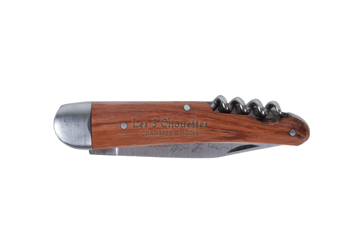 Fabriqué avec soin en France, ce couteau personnalisable est dôté de deux fonctions : lame et tire-bouchon. Son manche en Bois Bubinga et sa lame en carbone inoxydable offrent durabilité et esthétique raffinée.