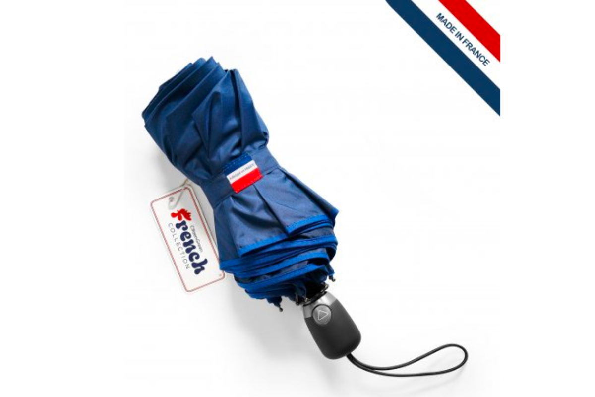 Dimensions : Ø.96 x 27cm | Couleur : bleu marine | Toile 100% PET recyclé | Etiquette Bleu Blanc Rouge | Quantité minimum de commande : 25 exemplaires