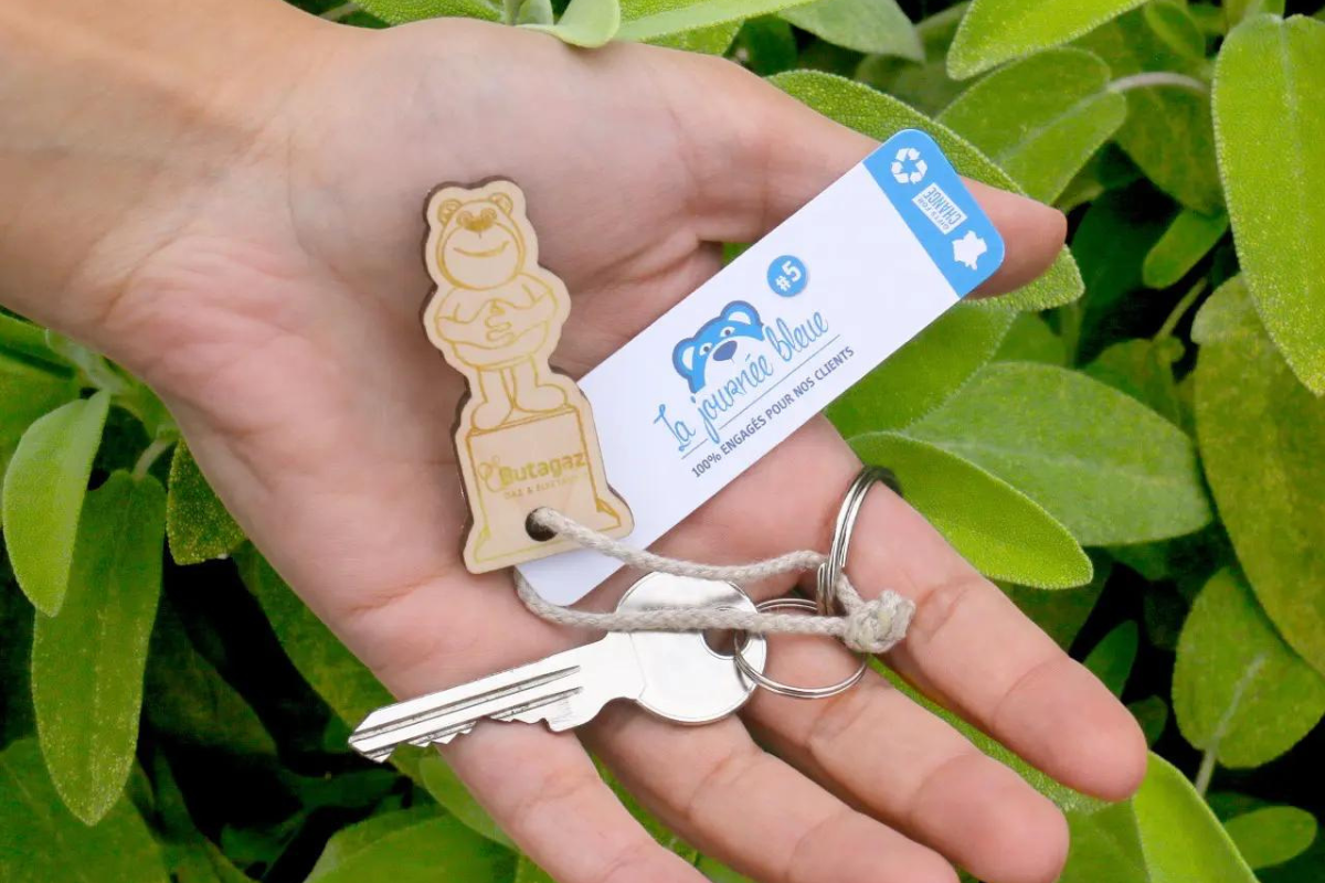 Chez DD, spécialiste des objets médias durables, nous avons retravaillé le concept du porte-clés publicitaire pour répondre aux préoccupations actuelles.