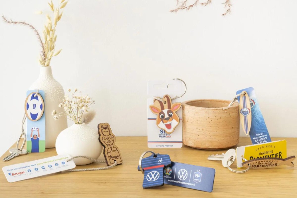Conscients des enjeux environnementaux et sociaux, nous avons tout mis en œuvre pour vous dénicher une collection de porte-clés variés et personnalisables, fabriqués en France en ESAT par des adultes handicapés, à partir de matériaux durables.