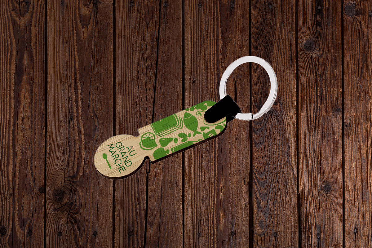 notre porte-clés publicitaire fabriqué en France ! Avec son embout arrondi, il offre la possibilité de faire office de jeton pour votre caddie de course. En matière naturelle, ce porte-clés bambou personnalisable est équipé d’un anneau chromé. Grâce à sa double fonctionnalité, ce goodies est facile à offrir et propose une belle surface de marquage sur laquelle apposer votre logo ou votre message.
