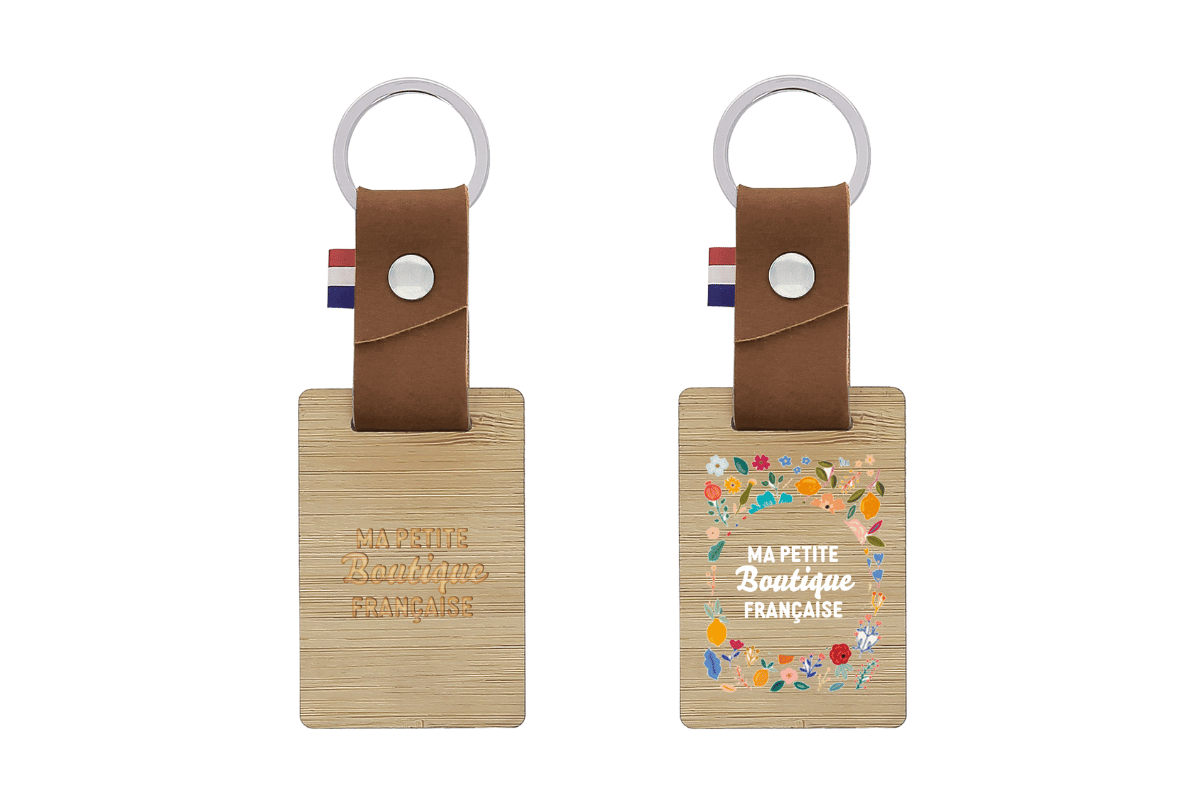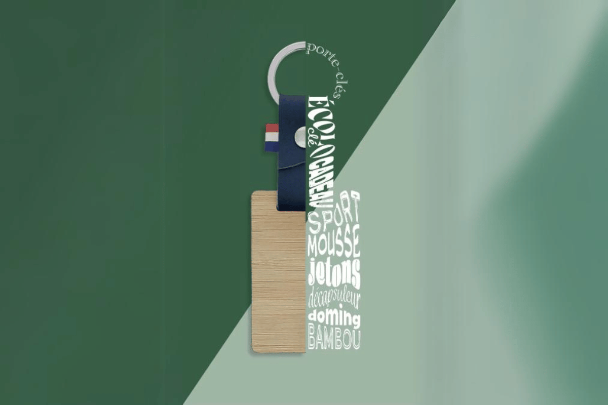 Voilà un petit goodies sympa, notre Porte-clés personnalisé unique, symbole de l’artisanat français, associant avec élégance matière végétale et bambou.