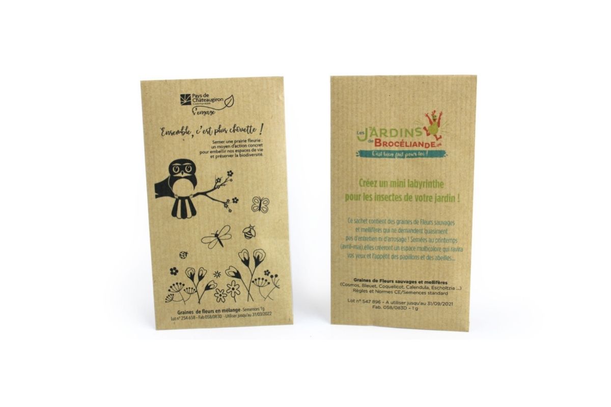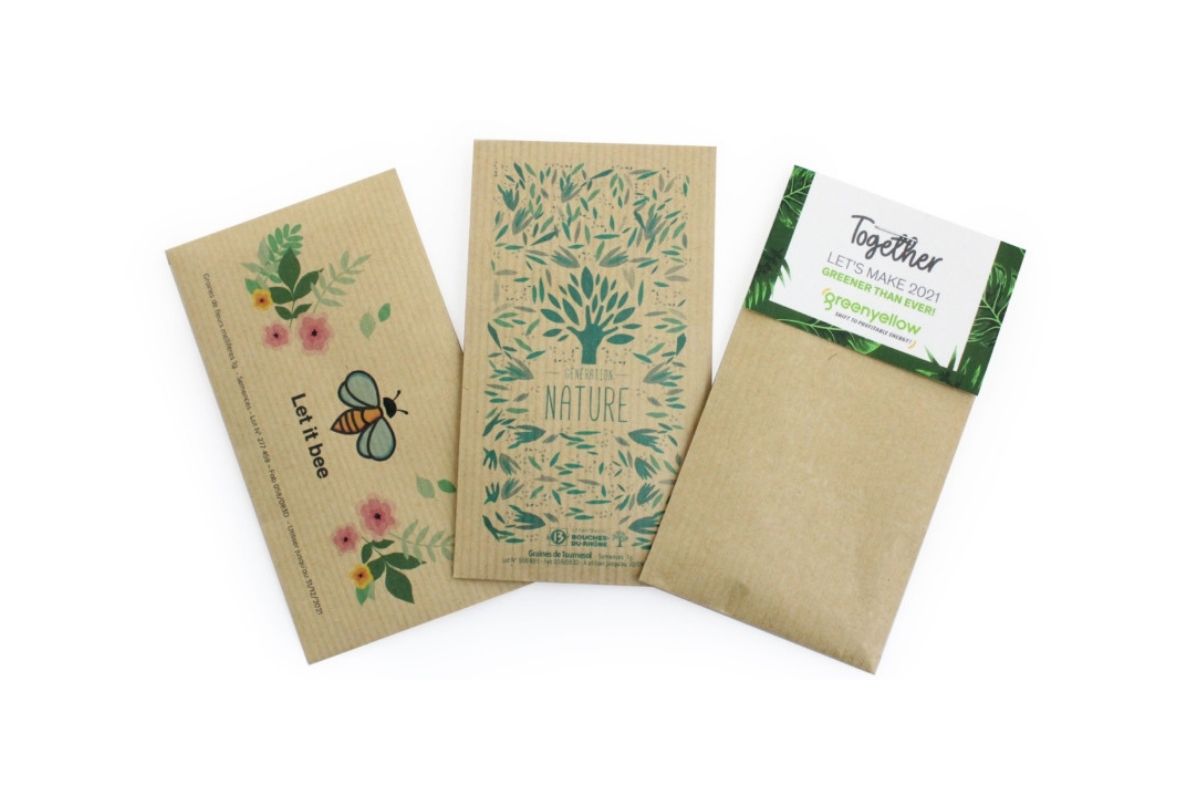 Ou même d’un goodies durable…découvrez nos sachets à graines personnalisables, en papier kraft, contenant des graines au choix (mélange de fleurs).