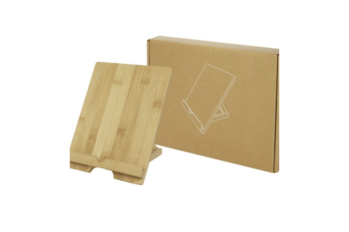 Porte-tablette en bambou personnalisable qui s’adapte à presque toutes les tablettes.