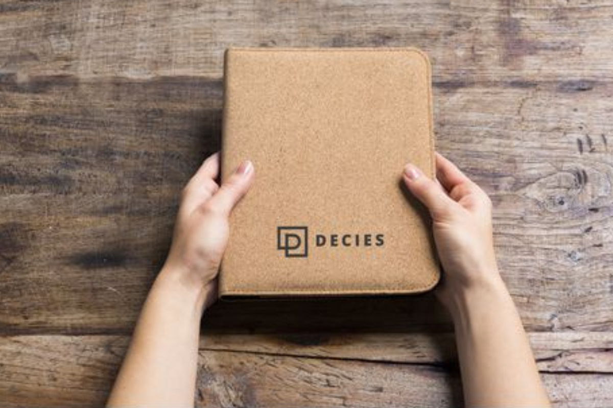 Avec une couverture et une pochette en liège. L’intérieur de ce porte-documents personnalisable est doublé en nylon.