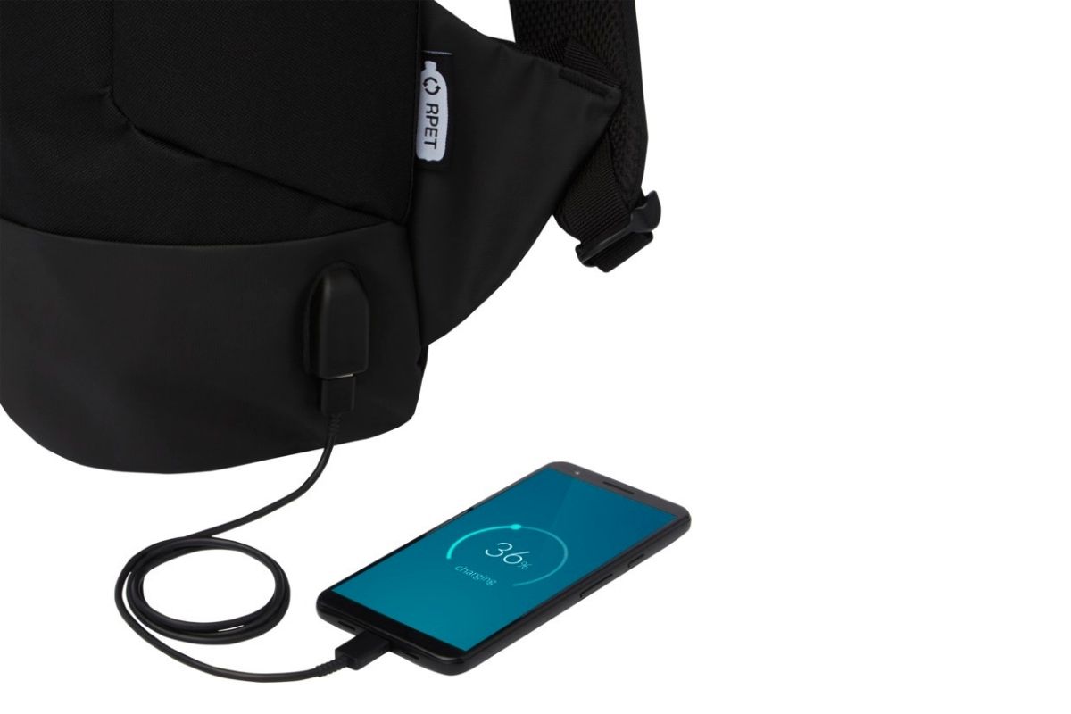Optez pour ce sac à dos anti-vol pour ordinateur personnalisable. Pratique grâce à son compartiment principal ouvert avec panneau d’organisation, une housse matelassée pour ordinateur portable de 15” et deux poches de protection RFID. Besoin de charger votre téléphone ?