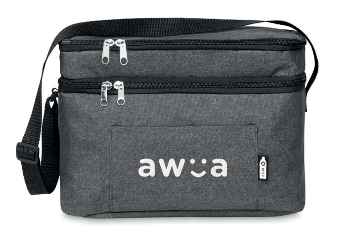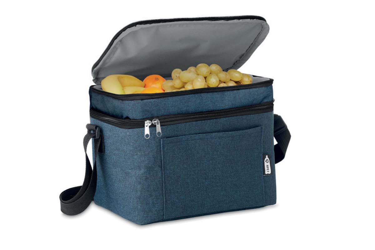 Offrez ce sac isotherme personnalisable en RPET avec ses 2 compartiments.